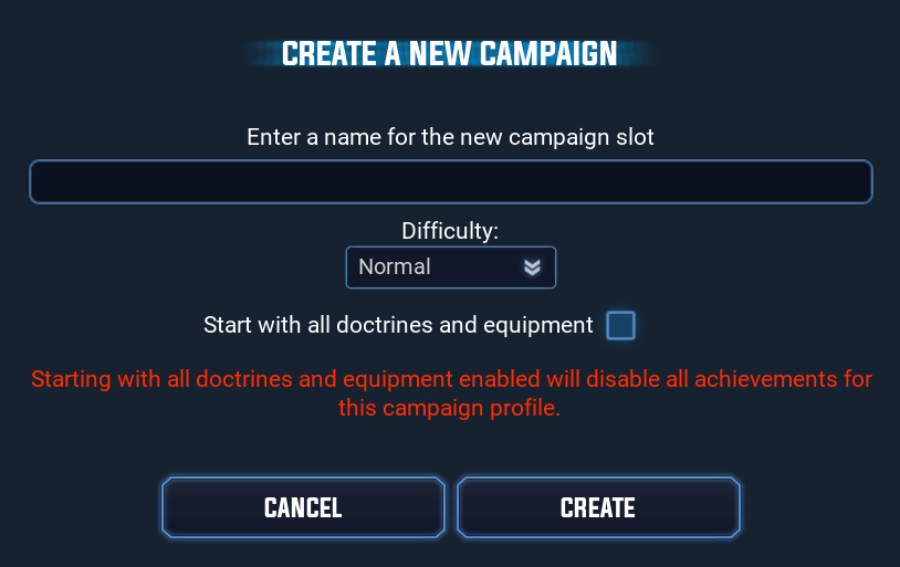 注意: 启用该选项将会禁用该战役存档的成就系统。